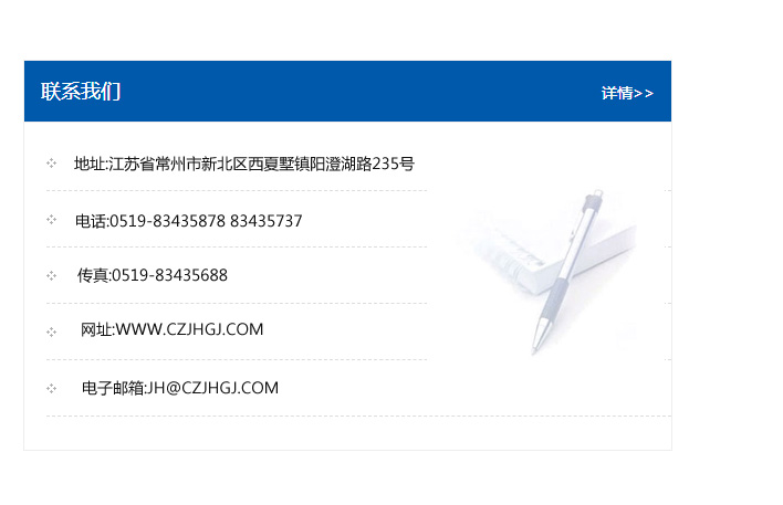 傳真:0519-83435688    郵編:213135    網址:WWW.czjhgj_com.5stravel.com    電子郵箱:JH@czjhgj_com.5stravel.com